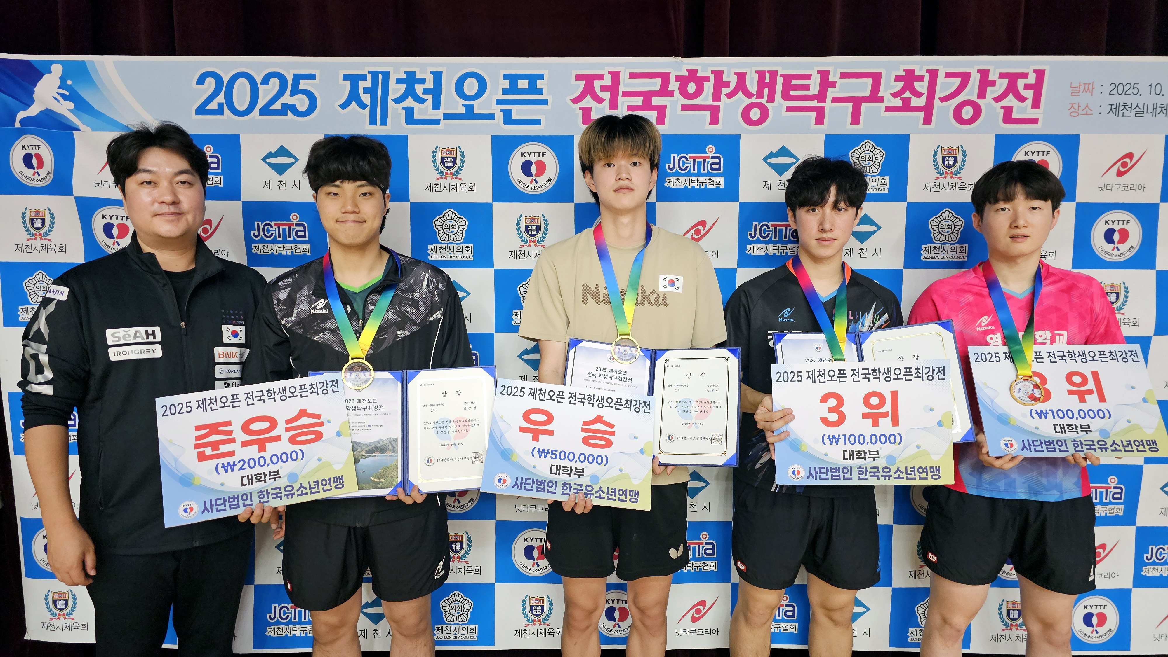 [남자 대학부] 2025 제천오픈 전국 학생탁구 최강전 입상자